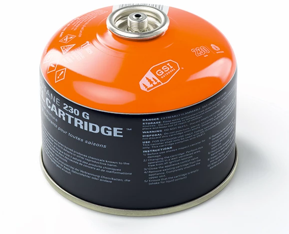La cartouche de carburant GSI Isobutane 230 g ne se perdra pas dans la trousse de tout campeur expérimenté. La cartouche de gaz servira de chauffage pour tous les repas lors de vos expéditions. Les cartouches de combustible Isobutane GSI sont compatibles avec tous les réchauds à gaz conventionnels dotés de raccords standard.