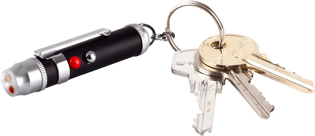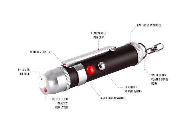 Le laser certifié CE peut être utilisé pendant une présentation ou un discours. La lampe est dotée d’un anneau intégré avec un mousqueton pour une fixation facile.