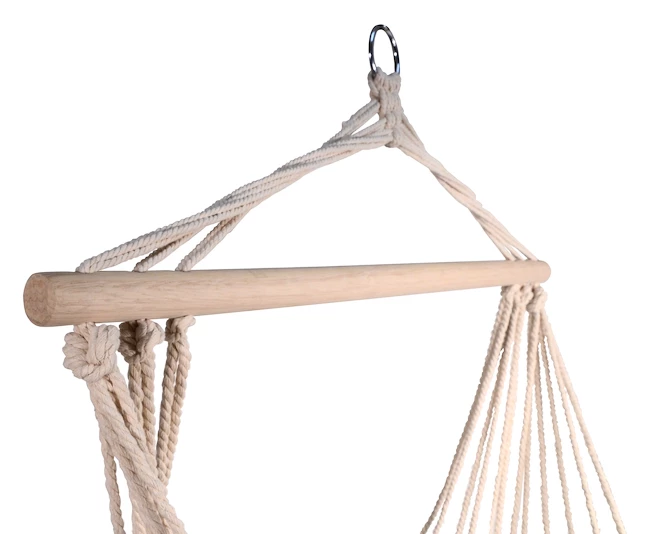 Hamac Cattara 95x50cm rouge-orange est un hamac d’extérieur pour s’asseoir, fixé avec un anneau de suspension. Le filet se compose d’un siège rembourré souple de 50 x 45 cm et d’un dossier d’une hauteur de 50 cm. Un haut niveau de confort est assuré par le rembourrage de 3 cm d’épaisseur.