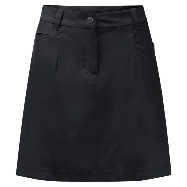 La jupe phantom Sonora Skort de Jack Wolfskin pour femme est une jupe légère, extensible et évacuant la transpiration pour les voyages et les loisirs. Que vous flâniez dans un marché à Marrakech ou que vous vous promeniez sur la plage à Bali, cette jupe vous permettra de rester bien habillée malgré la chaleur. La matière légèrement extensible de cette jupe-pantalon polyvalente est confortable sur la peau, même par des températures élevées.