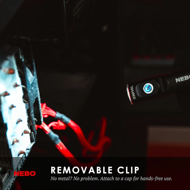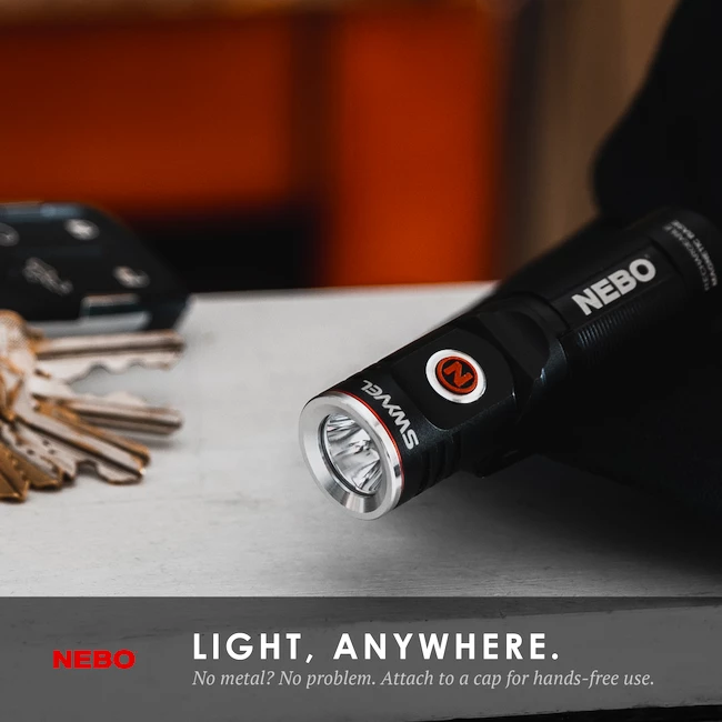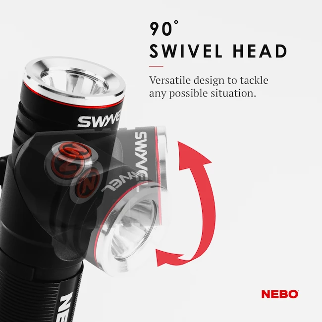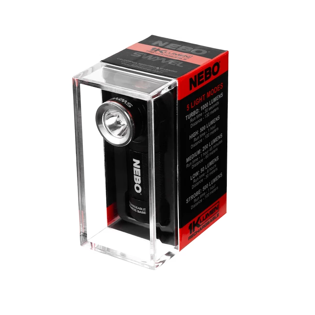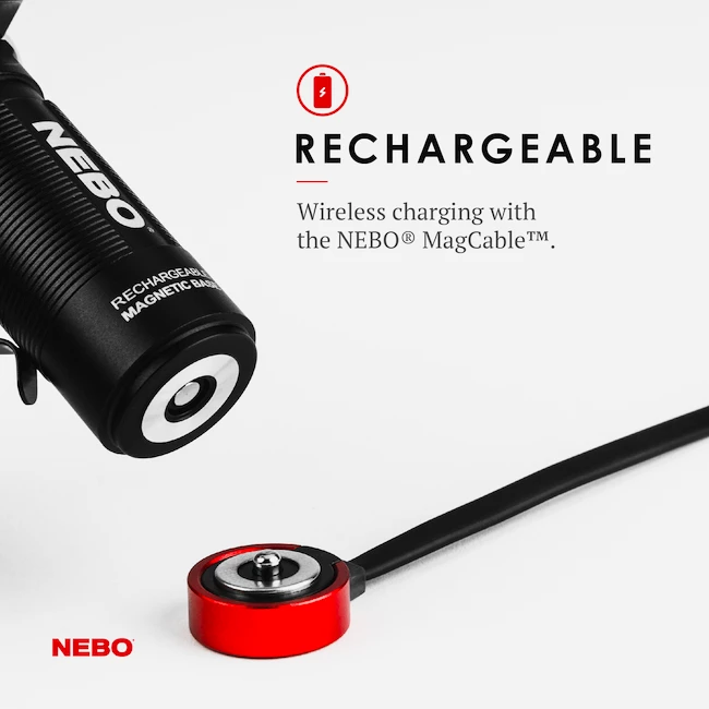 Vous pouvez facilement charger la lampe de poche à l’aide d’un câble USB. Vous verrez l’état de charge de la batterie sur l’indicateur. Appuyez simplement sur un bouton pour allumer. Vous pouvez faire pivoter la tête de la lampe de poche de 90°.