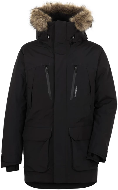 - 2 poches frontales couvertes par un rabat avec fermeture à bouton et isolation polaire, 2 poches latérales et 2 poches poitrine avec fermeture à glissière étanche