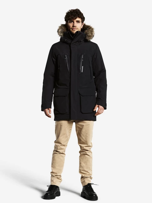 - La fourrure de la capuche peut être détachée à l’aide de boutons.