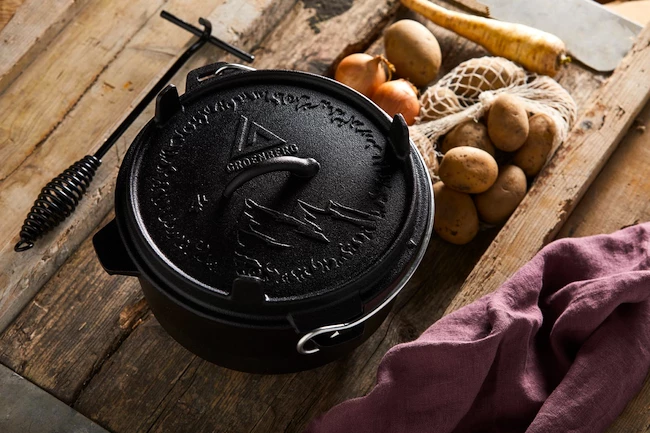 La marmite Groenberg Askja 4 L est une marmite en fonte à haute conductivité thermique, durable et dotée d’un couvercle. De cette façon, les ragoûts, les soupes, les légumes ou la viande deviennent un plaisir luxueux. Le couvercle est légèrement creusé pour que l’eau condensée à l’intérieur puisse s’écouler vers le bord et rien ne coule lorsque le couvercle est soulevé. La sortie de vapeur située sur le couvercle empêche les cliquetis désagréables ou la surcuisson. Particulièrement pratique : le couvercle peut également servir de casserole ou de plat de service et, grâce aux pieds situés sur le dessus, il est légèrement surélevé et absolument sûr. Convient pour le gril, la cuisinière à gaz, le four ou le feu ouvert.