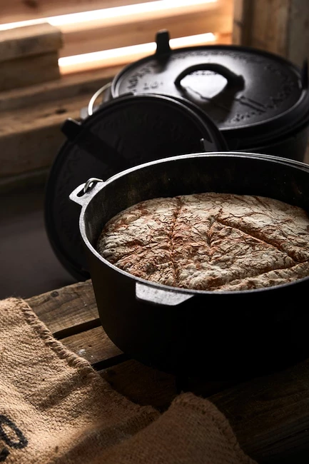 La marmite Groenberg Askja 7 L est une marmite en fonte à haute conductivité thermique, durable et dotée d’un couvercle. De cette façon, les ragoûts, les soupes, les légumes, la viande ou deviennent un plaisir luxueux. Le couvercle est légèrement creusé pour que l’eau condensée à l’intérieur puisse s’écouler vers le bord et rien ne coule lorsque le couvercle est soulevé. La sortie de vapeur située sur le couvercle empêche les cliquetis désagréables ou la surcuisson. Particulièrement pratique : le couvercle peut également servir de casserole ou de plat de service et, grâce aux pieds situés sur le dessus, il est légèrement surélevé et absolument sûr. Convient pour le gril, la cuisinière à gaz, le four ou le feu ouvert.
