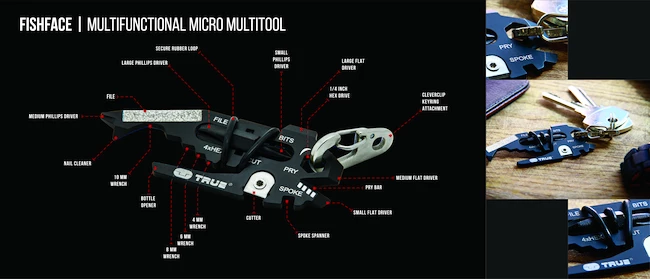 Le multi-outil True 18in1 FishFace vous permet de transporter 18 outils différents sur vos clés, prêts à être utilisés immédiatement.