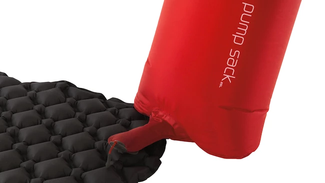Le produit Pump Sack 15L de la société Robens s’adresse avant tout aux possesseurs de matelas et matelas gonflables qui en ont marre de gonfler leur matériel avec la bouche ou de traîner avec eux une pompe encombrante et peu pratique. Il ne prend presque pas de place et peut également être utilisé comme sac de transport. Valve intégrée pour évacuer l’air après la fermeture du sac.