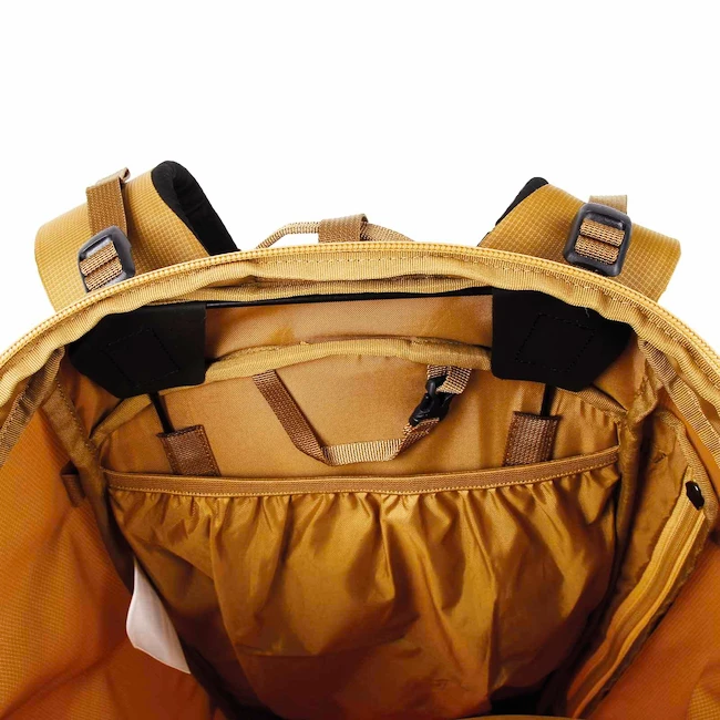 Le modèle est conçu pour une grande fonctionnalité pendant les activités d’alpinisme et d’escalade. Le nylon ripstop 210d léger et la conception mince minimisent le poids et augmentent la durabilité dans des conditions inhospitalières. Le sac à dos a une sangle de corde confortable sur le dessus et des tunnels 3D pour attacher des piolets. Deux poches, l’une sur le dessus avec une fermeture éclair YKK étanche et l’autre à l’intérieur avec un crochet à clé, vous permettent d’organiser votre équipement. Des sangles de compression sur les côtés vous permettent de réduire le volume.