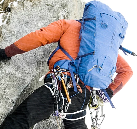 Le système de suspension innovant AlpinePro comprend un panneau arrière en forme de « S » qui le rend extrêmement confortable et soulage la tension des épaules. Les principales caractéristiques comprennent : deux porte-haches, un porte-casque et une corde pour ranger et transporter en toute sécurité l’équipement à l’extérieur du sac.