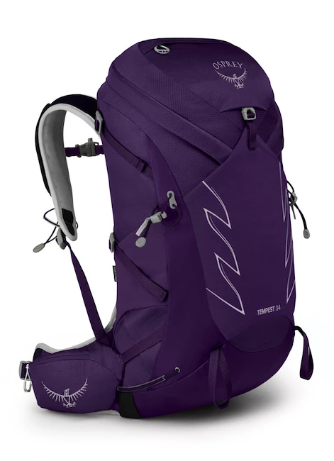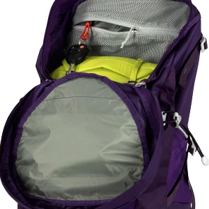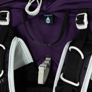 Le sac à dos OSPREY Tempest 34 III Violac Purple est la dernière génération de l’emblématique sac à dos femme Temperst d’Osprey. Le Tempest 34 est doté d’un système dorsal ventilé confortable AirscapeTM recouvert d’un maillage durable. Si vous partez en voyage avec des bâtons de trekking, vous apprécierez certainement le système unique Stow-on-the-Go™ pour attacher les bâtons à votre sac à dos. Il vous suffit de passer les bâtons dans deux boucles élastiques – une boucle se trouve sur le sac à dos et l’autre sur la bandoulière – et vous pouvez les retirer tout aussi facilement et rapidement. Sur la bretelle gauche, une poche extensible pour un téléphone portable ou d’autres essentiels. Le sac à dos est compatible avec une poche à eau, pour laquelle il y a un espace entre le système dorsal et le sac à dos et il y a un œillet pour sa fixation.