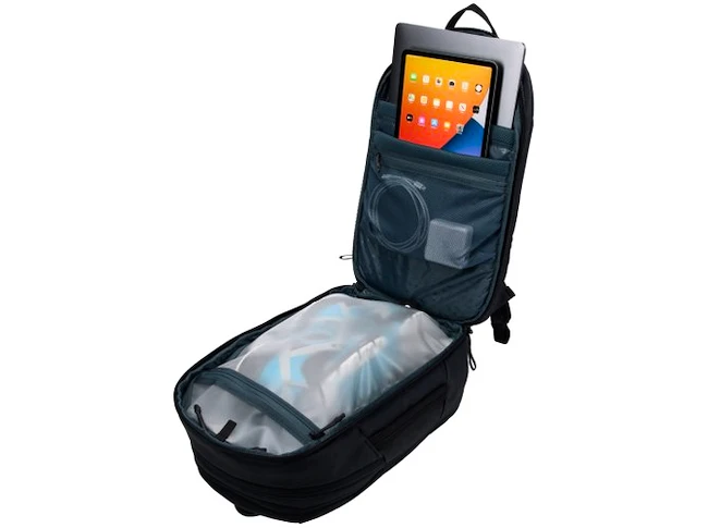 Le sac à dos multifonctionnel Thule Aion peut être étendu d’un sac à dos de 28 litres à un sac à dos de voyage de 32 litres, ce qui augmente l’espace utilisable de 15 %. Il dispose d’une cloison pratique pour séparer les objets du quotidien des équipements actifs. Pour faciliter l’emballage, le panneau arrière du sac à dos peut être complètement décompressé et ouvert comme une valise. À l’intérieur, il y a une cloison de séparation avec un insert en TPU, ce qui facilite l’organisation de votre équipement et qui empêche également le transfert d’humidité, d’odeurs ou de saleté vers d’autres objets dans le sac à dos.