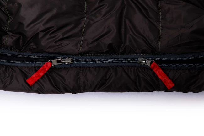 Deux sacs de couchage peuvent être reliés ensemble, le sac de couchage a une qualité et une fermeture éclair de fabrication japonaise. L’isolation est assurée par des plumes de canard, une capuche fermée avec cordon de serrage, un col chauffant et une poche intérieure en font partie intégrante. Le sac de couchage a une coupe momie populaire. Le sac de couchage convient aux personnes mesurant jusqu’à 195 cm.