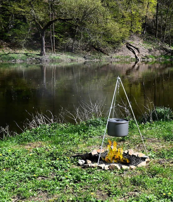 Le trépied pliable Cattara 86cm est un trépied pliable très pratique, c’est un excellent accessoire pour une cuisinière à gaz, mais aussi pour une cheminée. Il est composé de trois pieds pliables en aluminium durable et d’un crochet suspendu à une chaîne, pour une hauteur totale de 86 cm une fois assemblé. Une fois plié, l’appareil pèse 460 grammes.