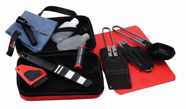 Le set de cuisine MSR Alpine Deluxe est le set de cuisine le plus complet dans une mallette pratique pour la cuisine de camp de base. L’étui peut être accroché n’importe où.