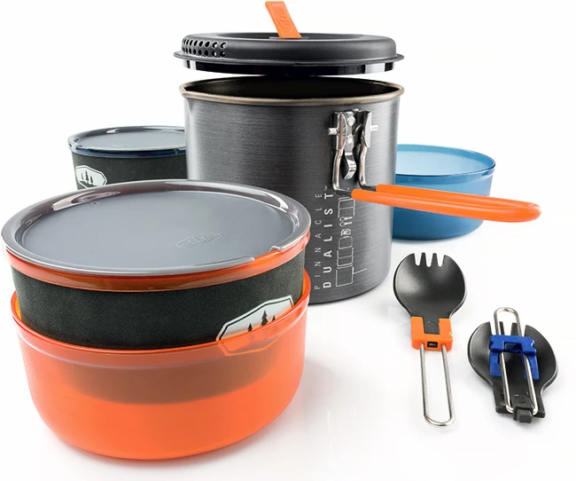 Les ustensiles de cuisine dualistes GSI Pinnacle conviennent aux gourmets qui aiment préparer des aliments frais sur le pouce. La technologie de surface Pinnacle est facile à nettoyer et ne brûlera jamais vos aliments. Cet ensemble est unique car il est fabriqué en aluminium anodisé, ce qui garantit légèreté et durabilité.